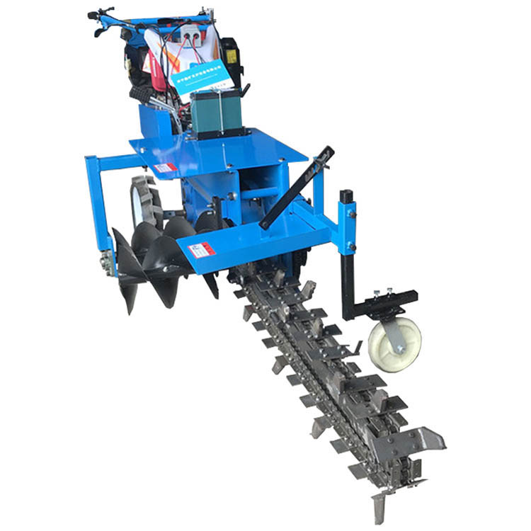 鏈條式開溝機(jī)主要用于自來水管道挖溝、通訊光纜挖溝、電纜挖溝等。每小時(shí)可以挖溝400米左右。該機(jī)采用回旋式開溝器,分為大中小型,小型:開溝寬度為10--30厘米,深度為50—150厘米,工作效率150—450米∕時(shí);中型:開溝寬度為20—60厘米,深度為60—180厘米,工作效率150—500米∕時(shí);大型:開溝寬度30—150厘米,深度50—230厘米,工作效率150—700米∕時(shí),可挖凍土1.5米深。適用農(nóng)田水利灌溉渠道,煤氣管道、石油管道、自來水管道,地下電纜鋪設(shè)等各項(xiàng)工作的開溝作業(yè)。并配套墻邊、路邊專用挖溝設(shè)備?;匦礁咚倩靥顧C(jī)是專為回旋式挖溝機(jī)設(shè)計(jì)的新配套產(chǎn)品,工作效率極高,每小時(shí)可回填500—700米,回填質(zhì)量高、速度快。