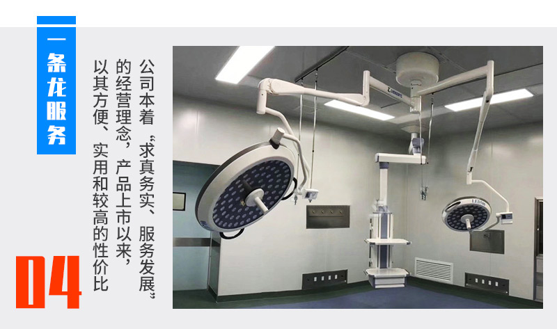 明亮均勻的照明:LED光源發出的光束透過特殊設計的高性能透鏡在手術區域聚焦匯成滿足手術照明所需的光域;最大照明度可達160.000LUX。采用數字方式無級調控LED的亮度,每個燈頭的照明度可以分別調節;。