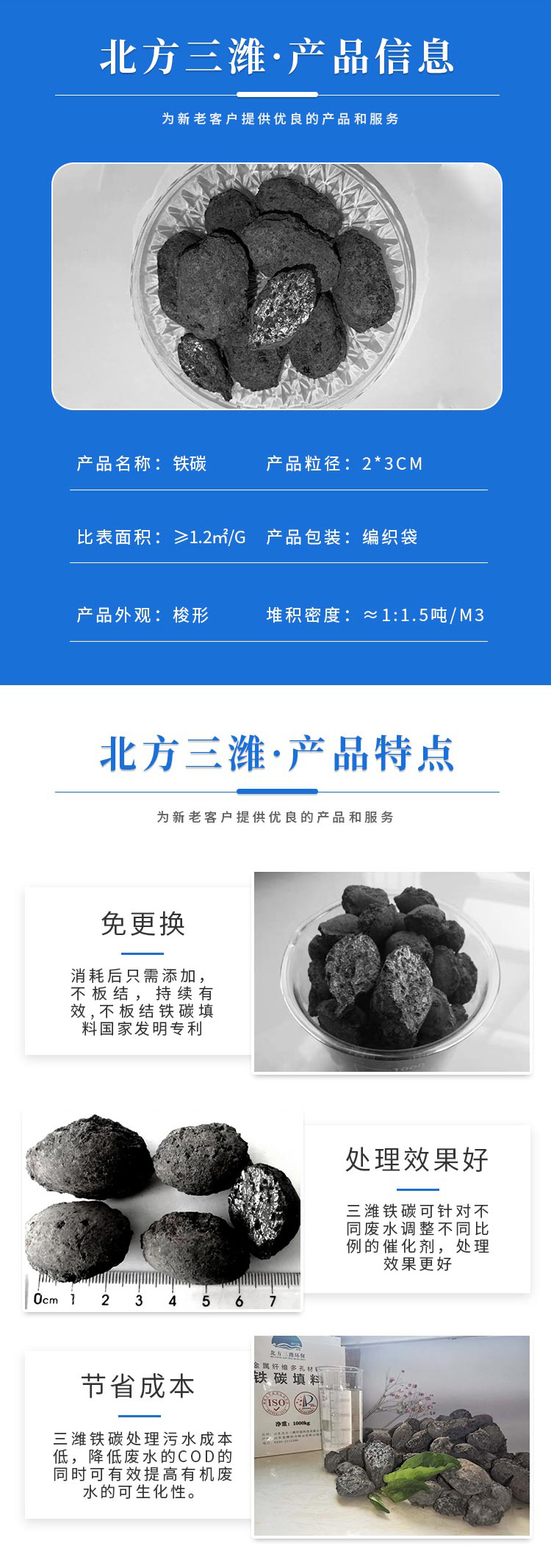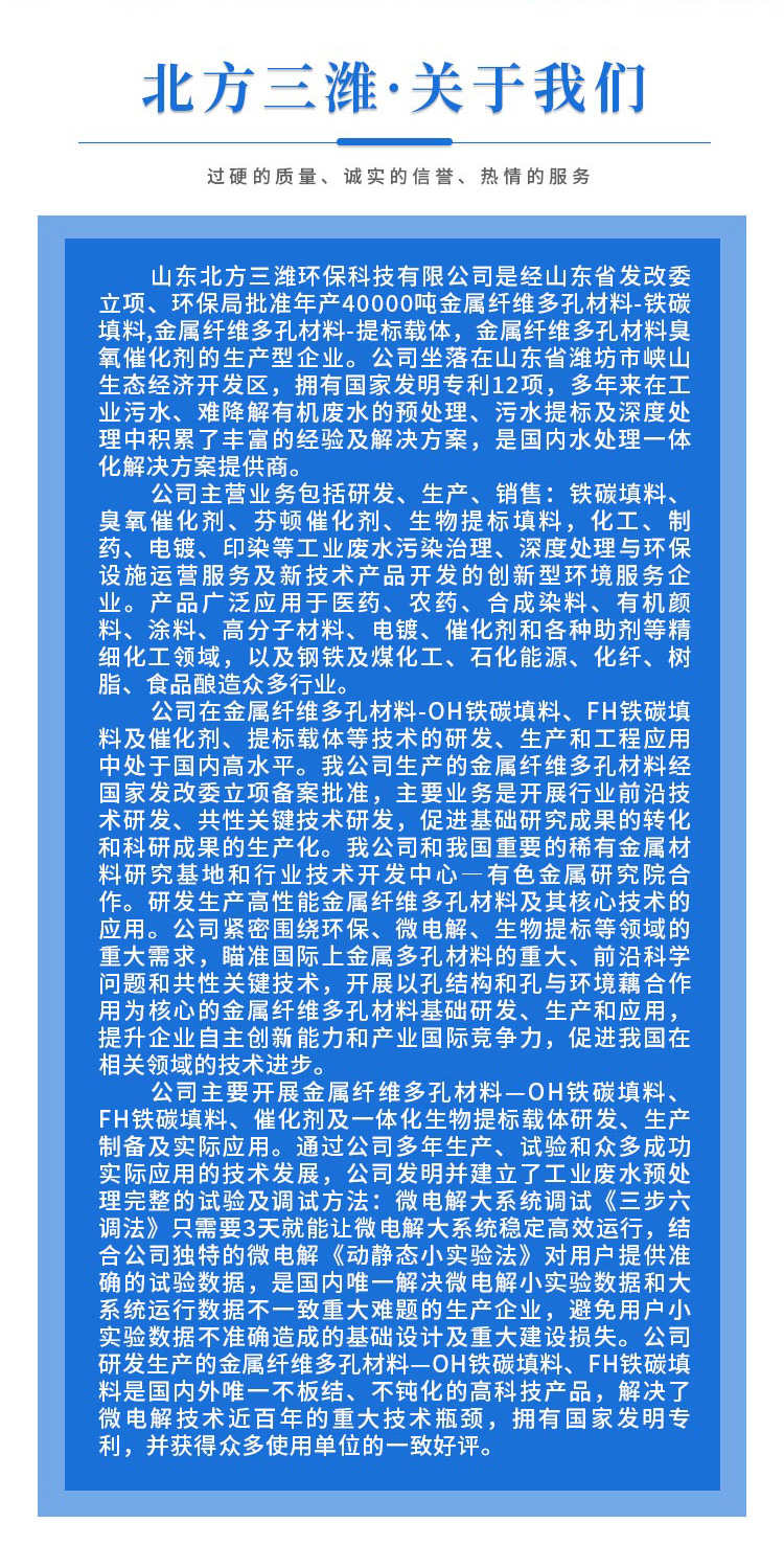 ??6.同素異構(gòu)結(jié)晶鐵素體填料,固相燒結(jié)窯變脆性強(qiáng)度適中,消耗量低,污泥量更少,壽命長(zhǎng),微電解正交峰值反應(yīng)效果高。