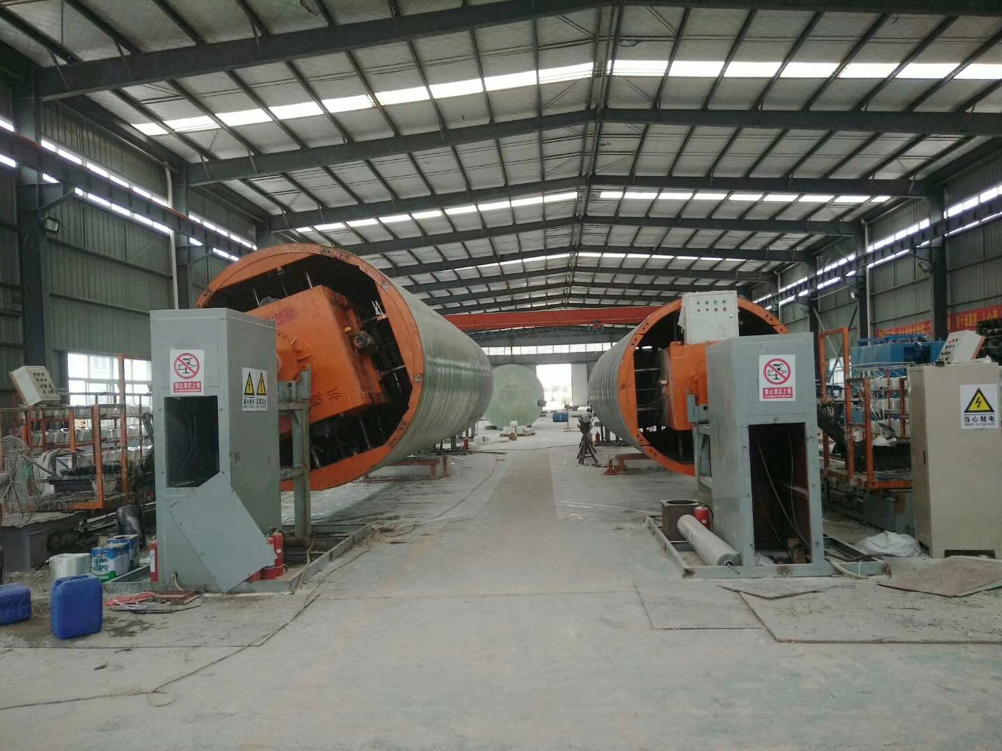 3、玻璃鋼化糞池一體成型內加筋設備一般采購2套設備能夠滿足從4-100立方的生產,直徑分別是3200mm(40-100立方)\2300mm(15-30立方)\1800mm(4-12立方),2套設備占地15米X35米,車間如果上行車高度必須大約6米;針對一些客戶廠房高度小于6米的,我們可以不用行車脫模,制造一個升降、前進后退的底盤小車,解決脫模的問題。