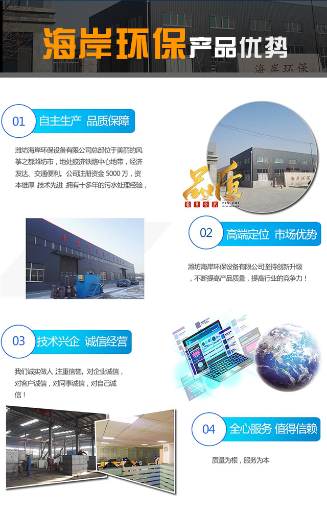 濰坊海岸環(huán)保設(shè)備有限公司總部位于美麗的風(fēng)箏之都濰坊市,地處膠濟(jì)鐵路中心地帶,經(jīng)濟(jì)發(fā)達(dá)、交通便利。公司注冊(cè)資金5000萬(wàn),資本雄厚,技術(shù)先進(jìn),擁有十多年的污水處理經(jīng)驗(yàn),并通過(guò)GB/T19001-2016/ISO9001:2015質(zhì)量體系認(rèn)證,是以環(huán)保設(shè)備研發(fā)生產(chǎn)、環(huán)保工程設(shè)計(jì)、施工總承包、污水站運(yùn)營(yíng)維護(hù)于一體的科技創(chuàng)新型企業(yè)。
